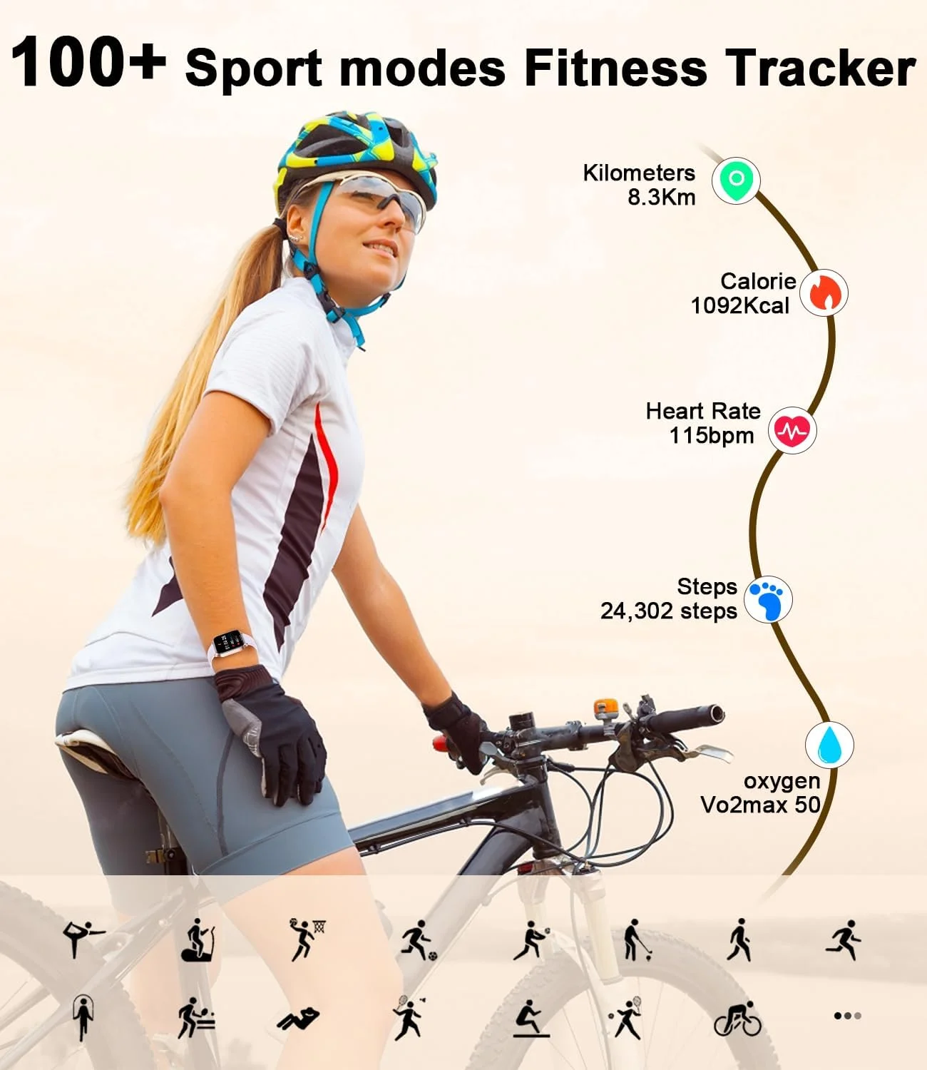 - Metrics measured: Heart Rate Monitor,Blood Oxygen Monitor,Sleep Monitor,Blood Pressure Monitor